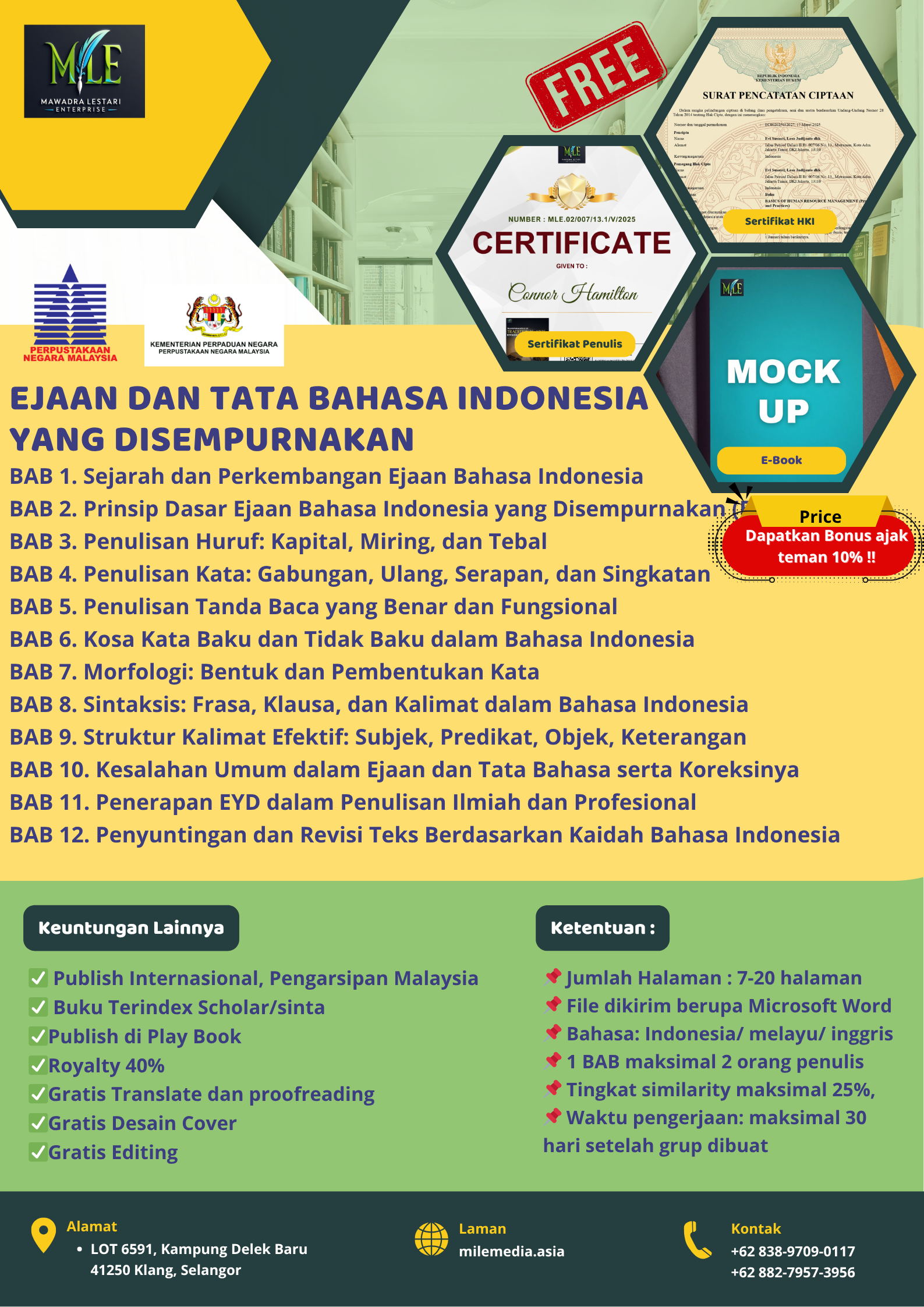 • Free sertifikat HKI dan sertifikat penulis
