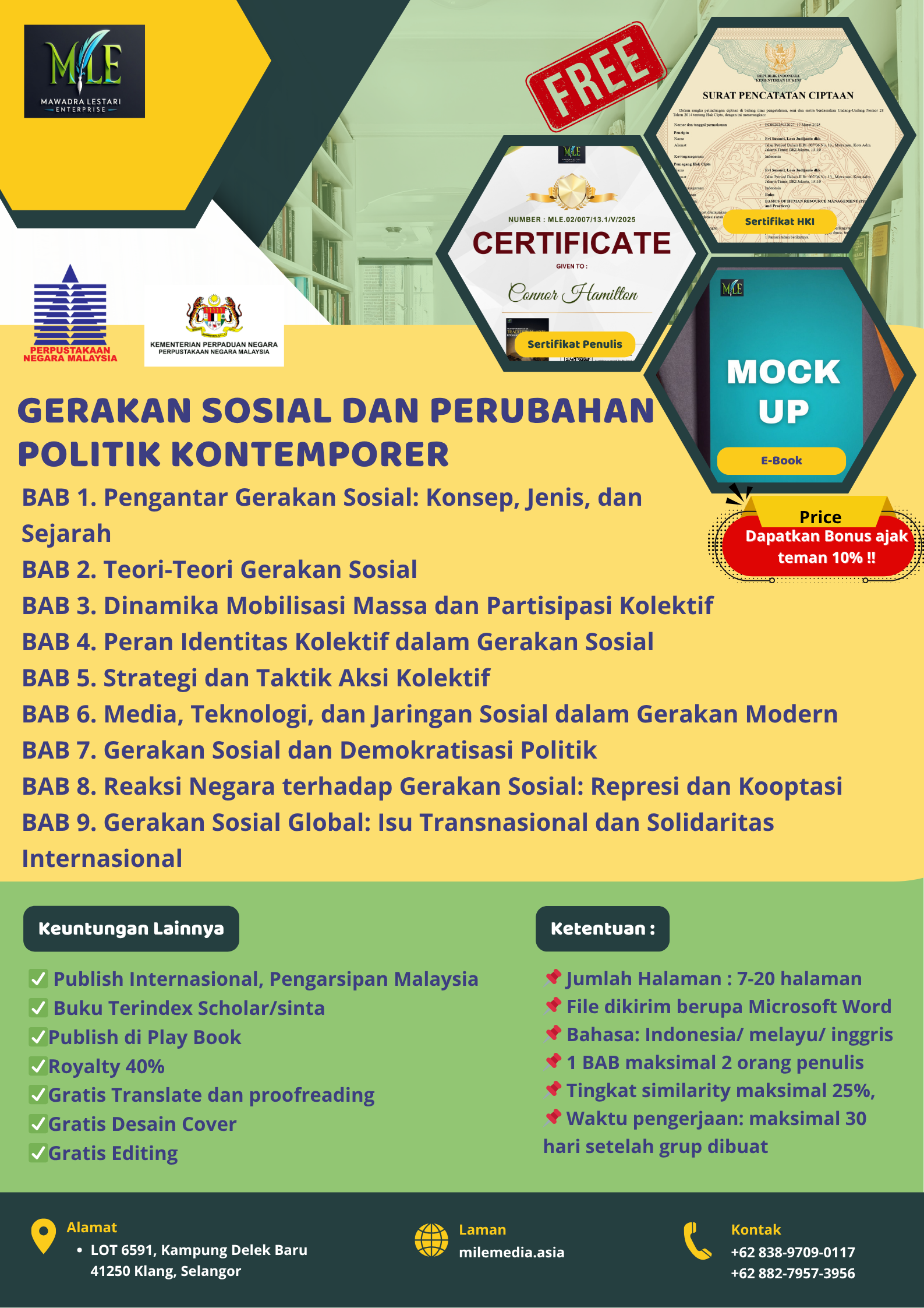 • Free sertifikat HKI dan sertifikat penulis