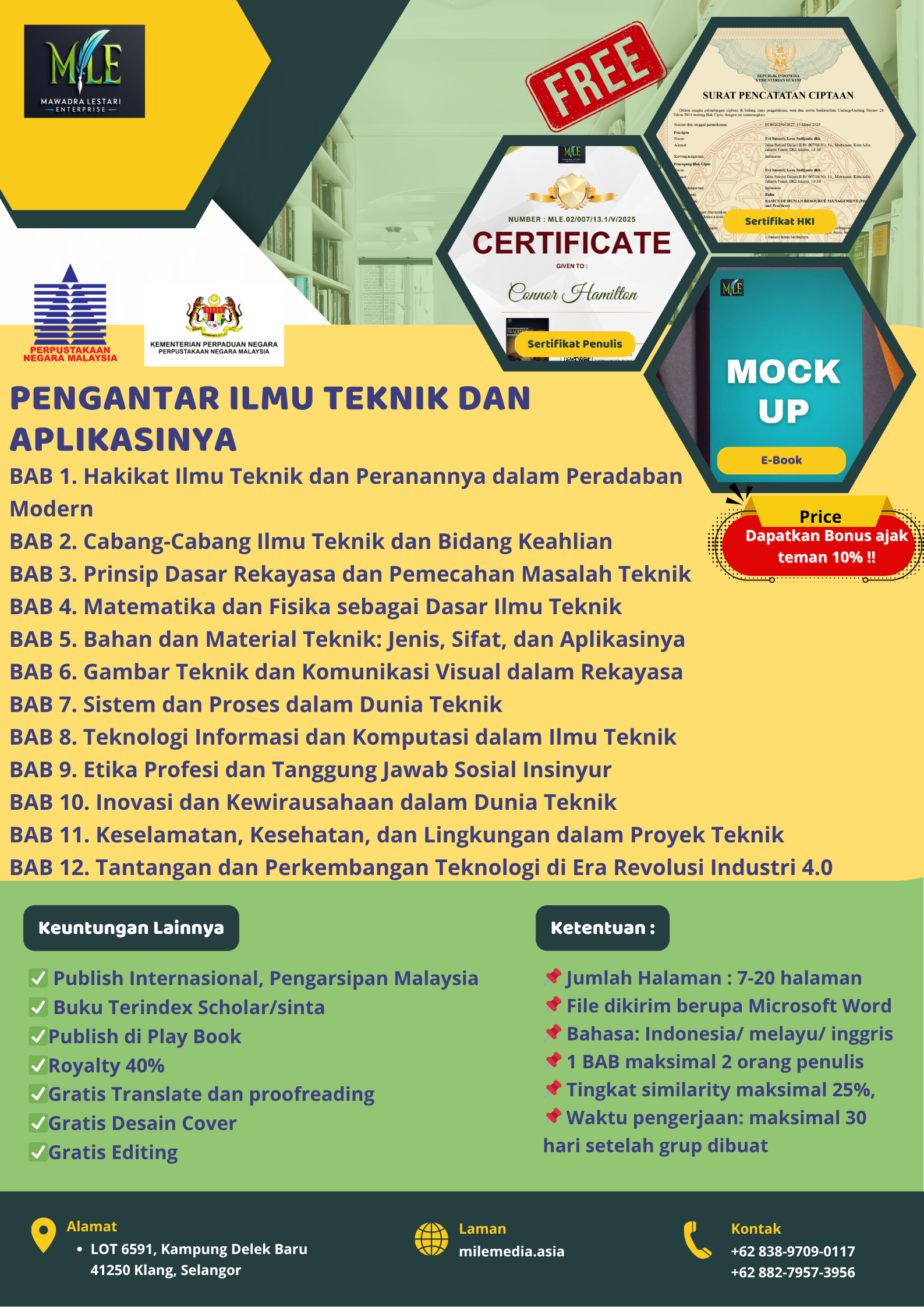 • Free sertifikat HKI dan sertifikat penulis