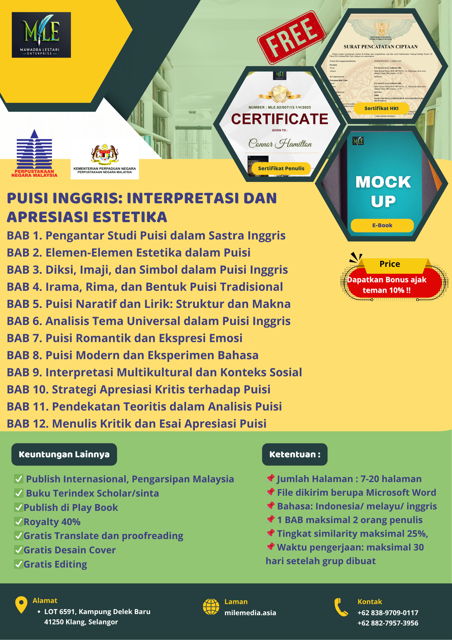 • Free sertifikat HKI dan sertifikat penulis